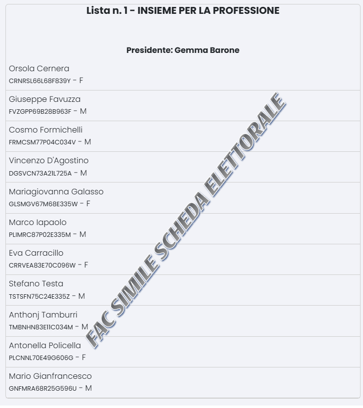 LISTA N. 1 "INSIEME PER LA PROFESSIONE"